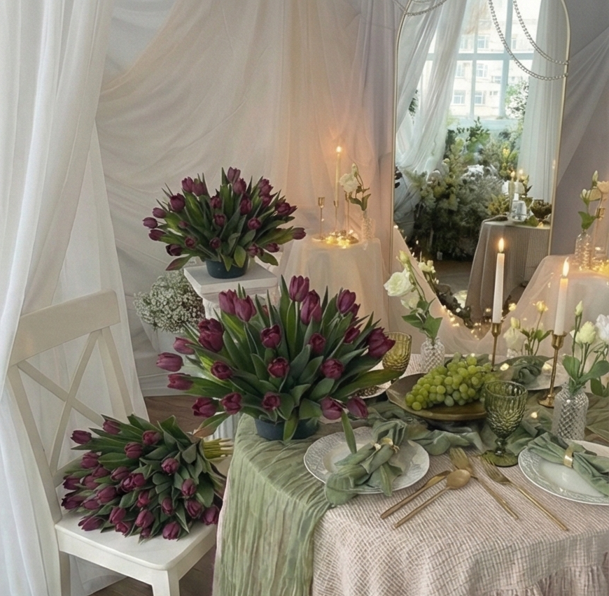 🌷 500❗️😱 ЖИВЫХ сиреневых тюльпанов и красивейшие композиции из них в одной из зон