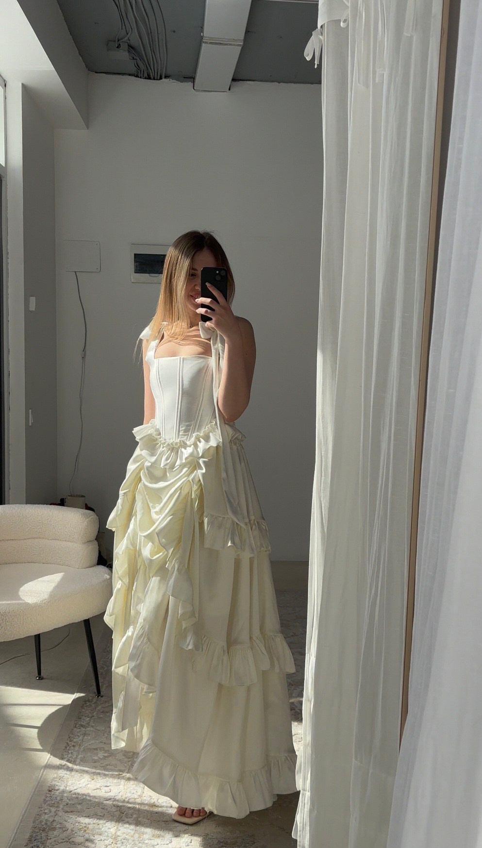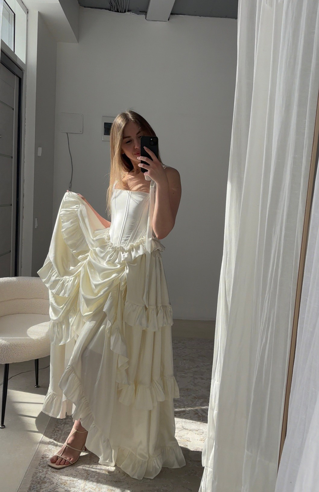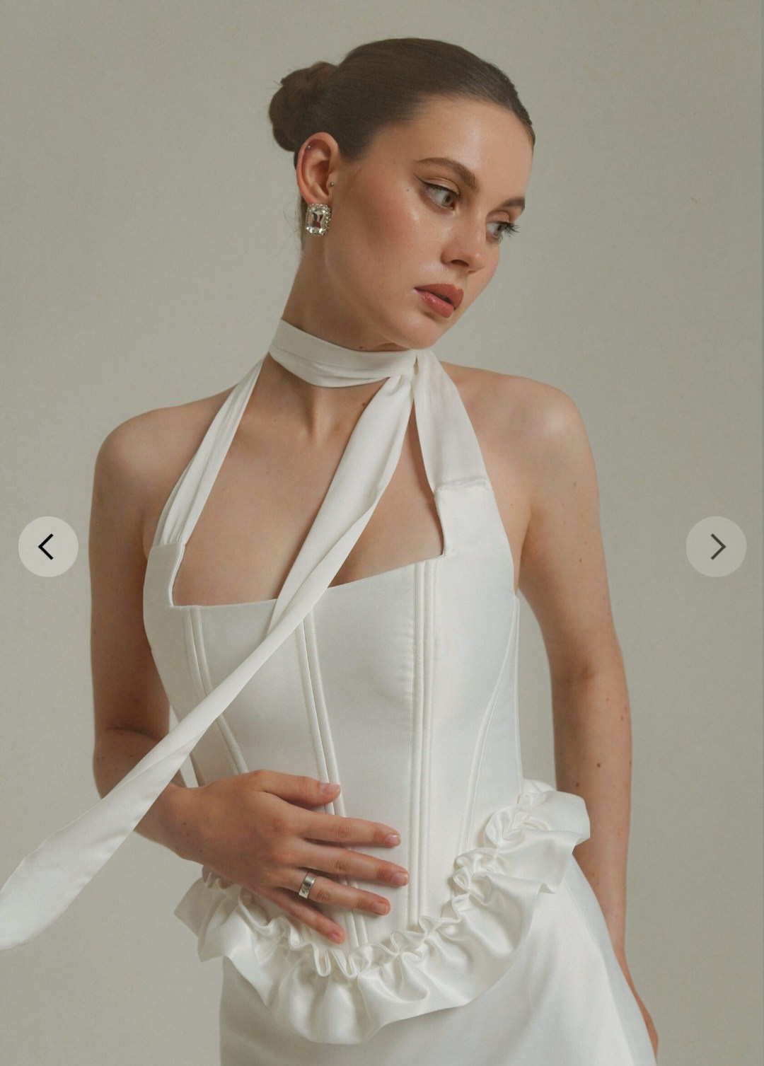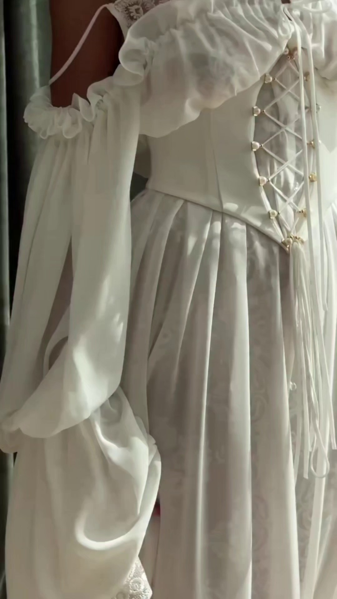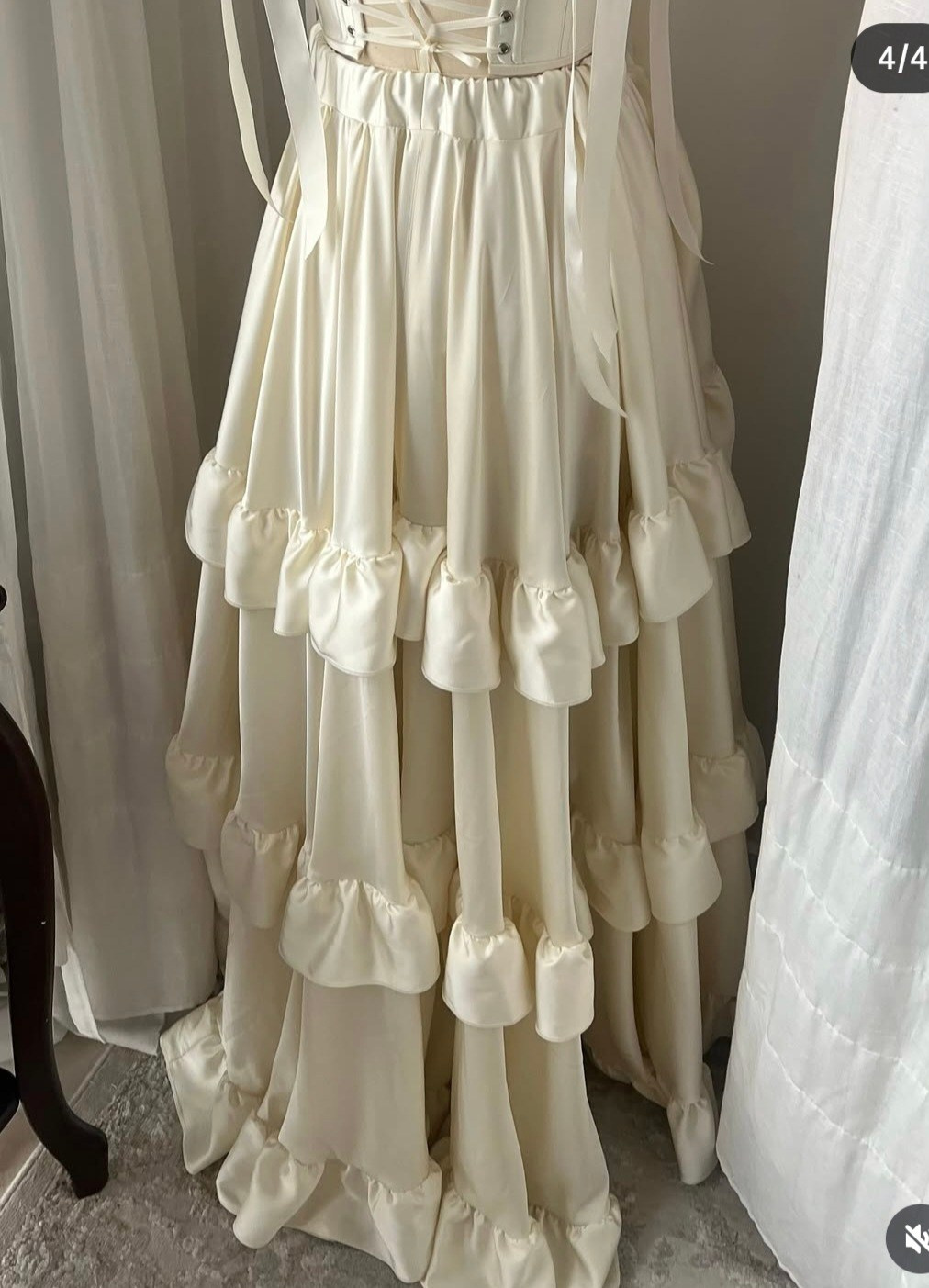 Комплект «тройка»: атласная юбка на резинке + корсет из шелка + съёмные воздушные рукава. Длина юбки спереди регулируется. В нашей коллекции корсет, который на первых фото. Не просвечивает, однако под юбку надевайте только бежевое/телесное нижнее белье. В наличии один комплект.