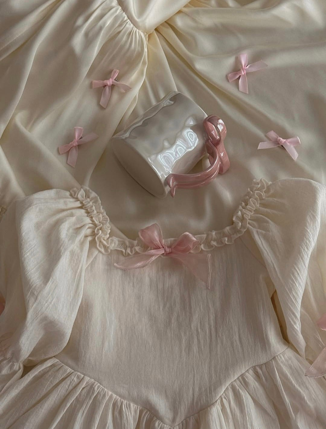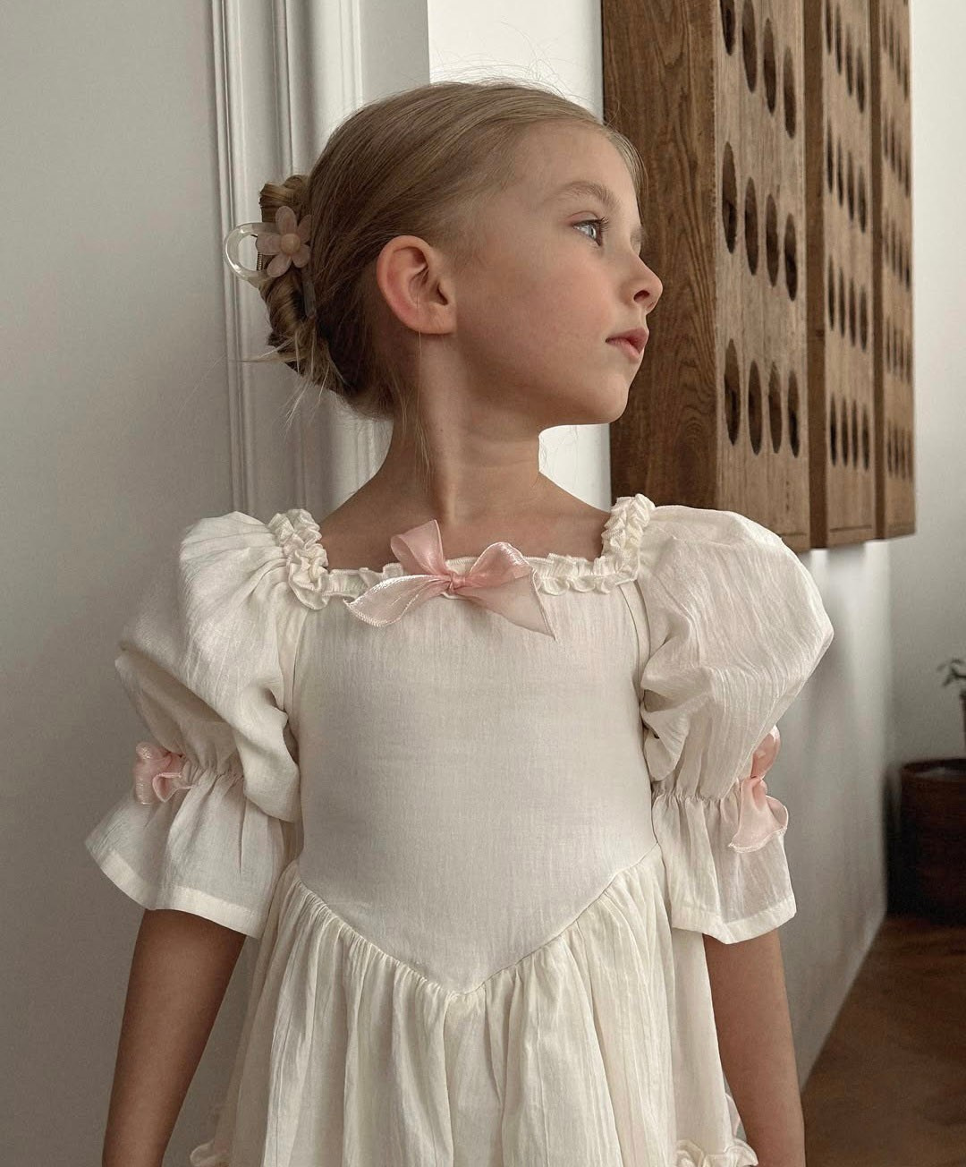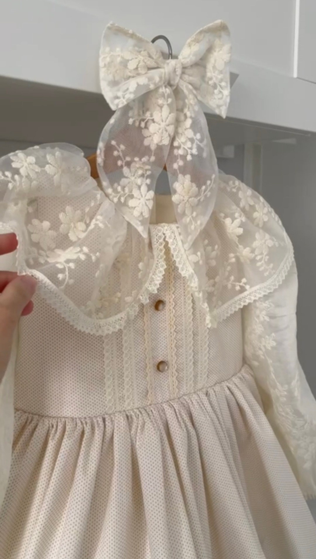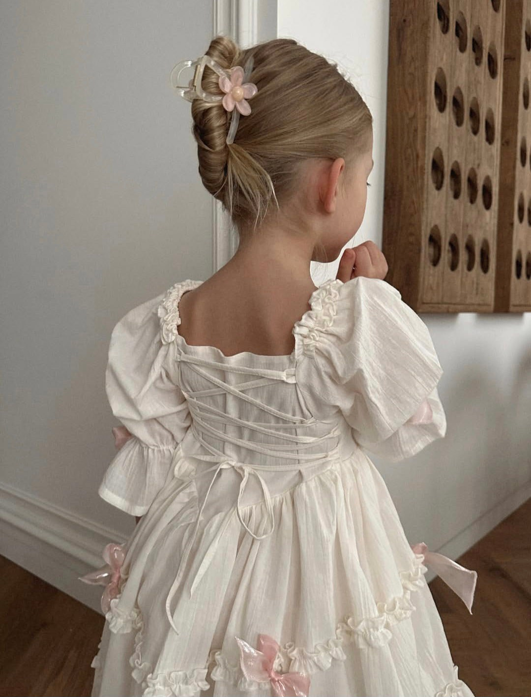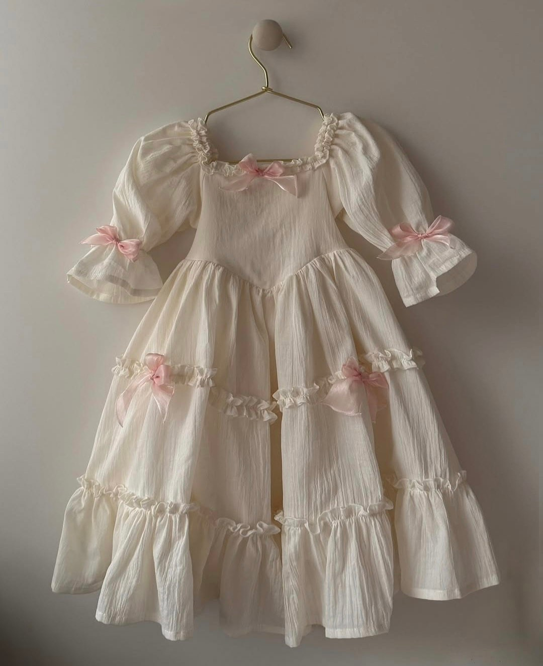 Платье выполнено из тонкого 100% хлопка крэш с подкладом. На спинке есть регулируемая шнуровка. Легкое, как взбитые сливки, нежные, как лепестки роз, и бантики — как глазурь на любимом пирожном. Розовые заколки с длинными лентами и бант в комплекте. В наличии 2 платья.