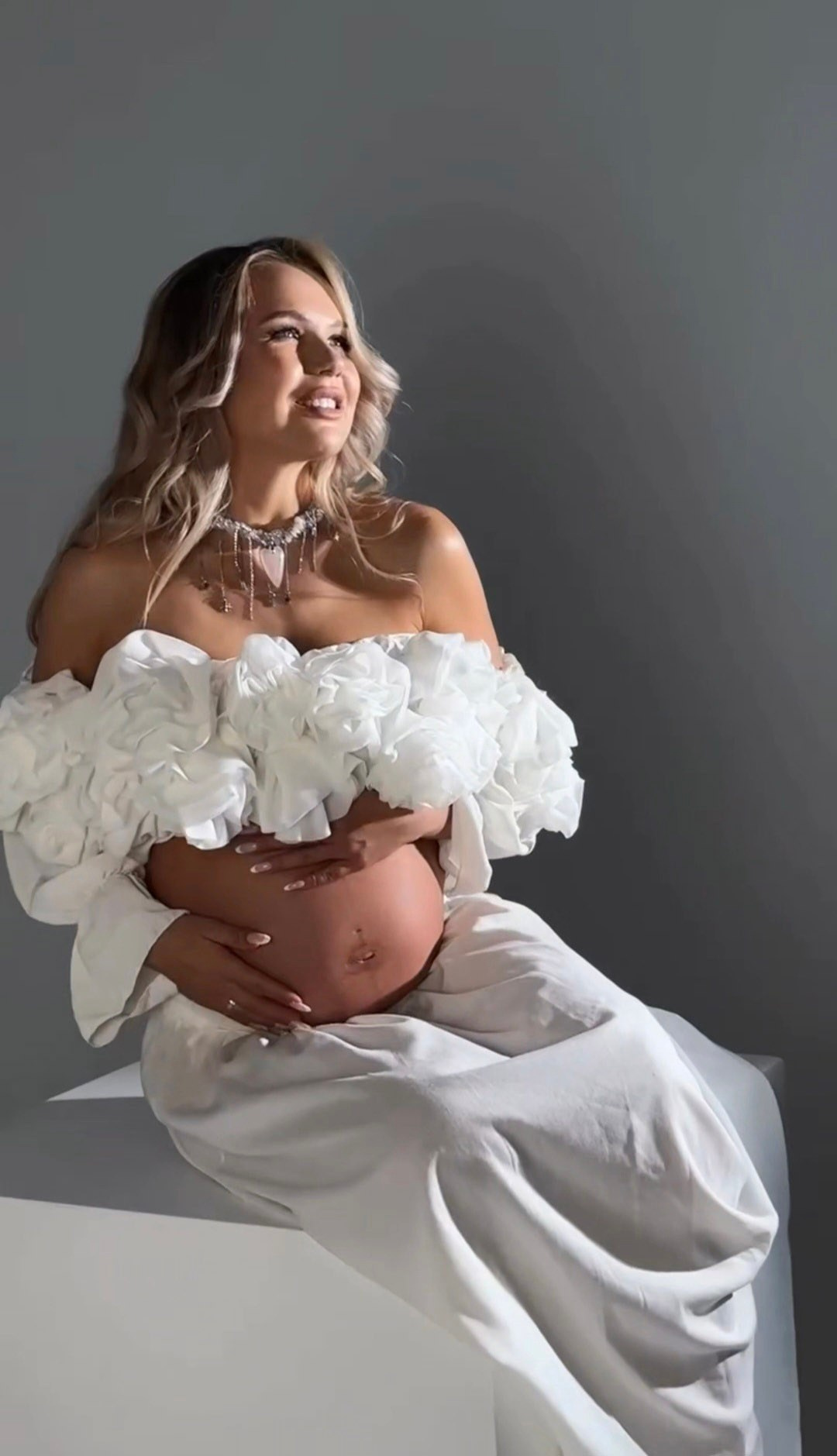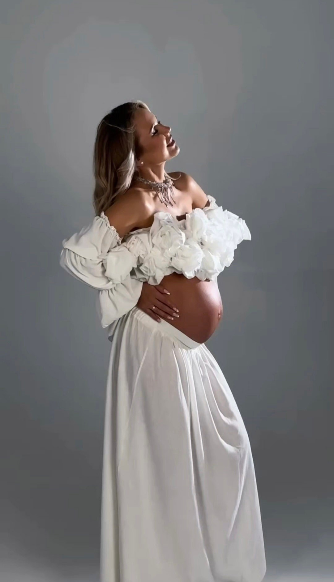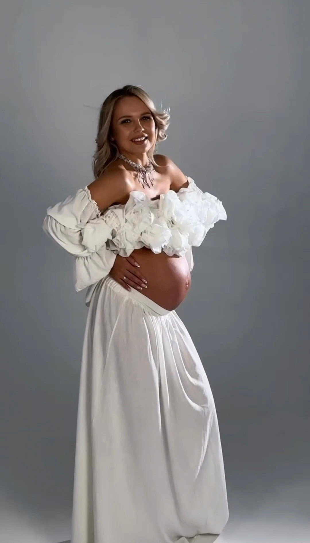 Размер: 40-46, образ подойдет стройным беременным, если заменить корсет на шелковый топ. Юбочку можно надевать под и над животиком.
